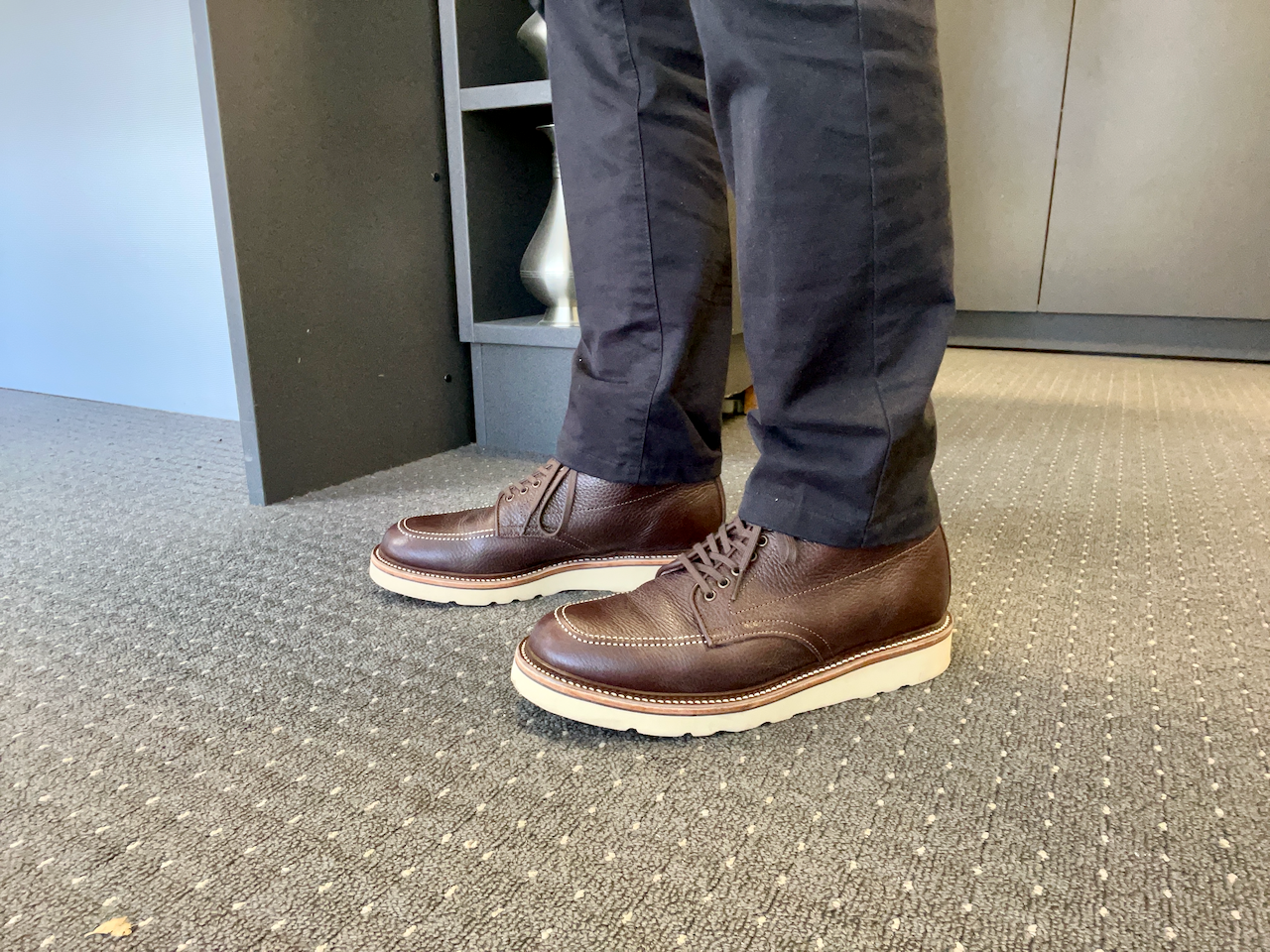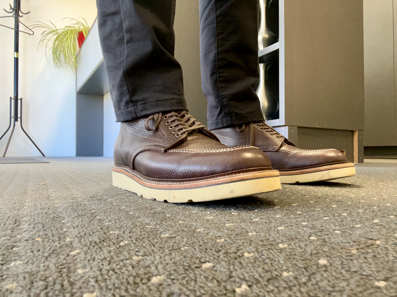 Joking aside, I like this leather. It’s firm and supportive, seems hardy on the surface because of the pattern, has so far avoided scuffs, even on my famous scuff attracting right toe. I think this would be easy to care for and will just need brushing and conditioning with something like Venetian Shoe Cream.